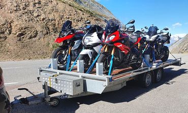So verfügt z. B. der Doppelachsen-Trailer über integrierte Auffahrschienen, Motorrad-Radhalterungen, Lenkergurt-und Diebstahlsicherung sowie Spanngurte, Schlaufen und Adapter 13/7-polig in der Zubehör-Box. Mit Rädern unterhalb der Ladefläche bietet er bestmögliche Fahreigenschaften und eine optimale Platzausbeute für bis zu sechs große Motorräder. Zudem beinhaltet der Doppelachsen-Trailer ein Reserverad sowie eine 100 km/h-Zulassung.